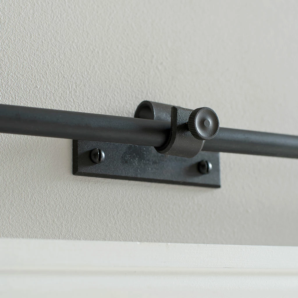 Our 12mm Chapel Centre Brackets are the perfect companion for your forged iron curtain poles ensuring they will look fabulous for years to come in whichever room they are fitted. Finished in traditional black Beeswax for a lovely soft, wrought iron look, these brackets are made from premium quality steel and are suitable for all curtains. We also make a wide range of complementary finials, rings and curtain holdbacks for you to choose from. The brackets have a decorative thumbscrew at the front to help secure your pole, and chamfered edges for an elegant finish.