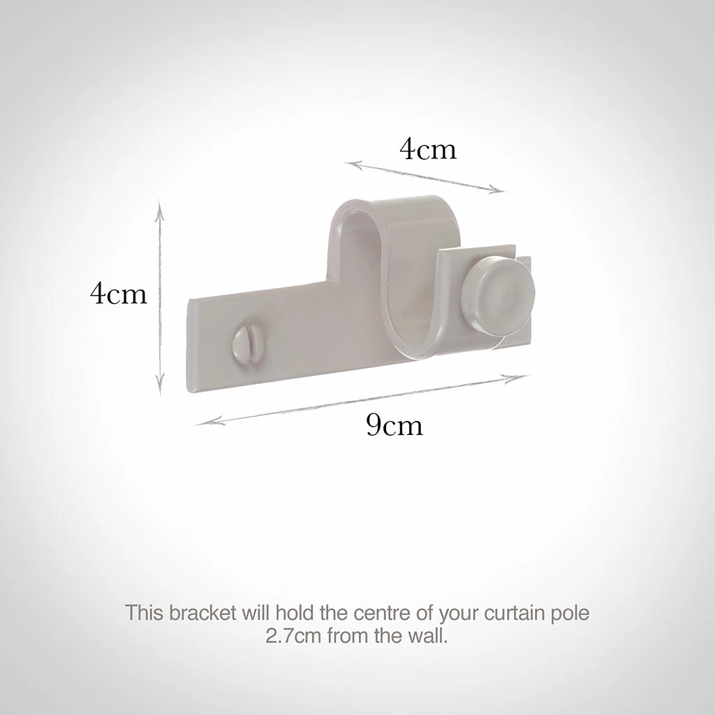 - Standard brackets are generally used at either end of your pole. With a reach (depth) of 4cm to the front of the pole, they will fit most window settings.