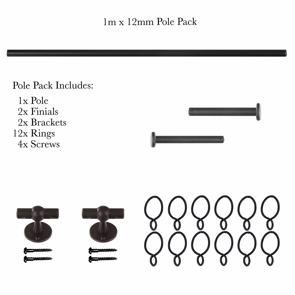 Each pack contains all you need to dress one window and comes complete with curtain pole, finials, rings and brackets: