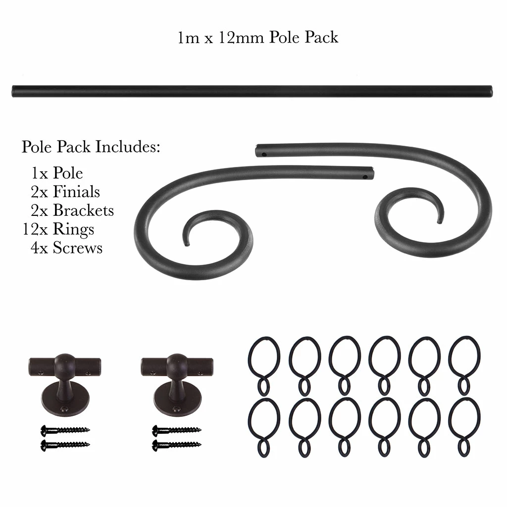 Each pack contains all you need to dress one window and comes complete with curtain pole, finials, rings and brackets: