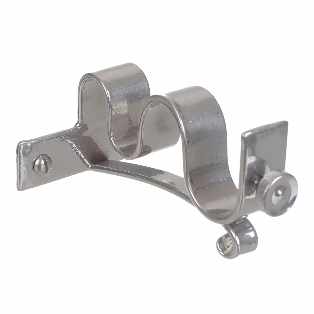 This bracket is finished in mercury for a silvery grey metallic look and is suitable for all curtains. We also make a wide range of complementary finials, rings and curtain holdbacks for you to choose from. The brackets have a decorative thumbscrew at the front to help secure your pole, and chamfered edges for an elegant finish.