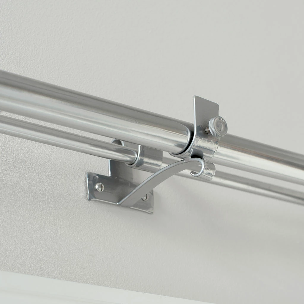 - Double pole standard brackets are generally used at either end of your pole. With a reach (depth) of 9cm to the front of the pole, they will fit most window settings.