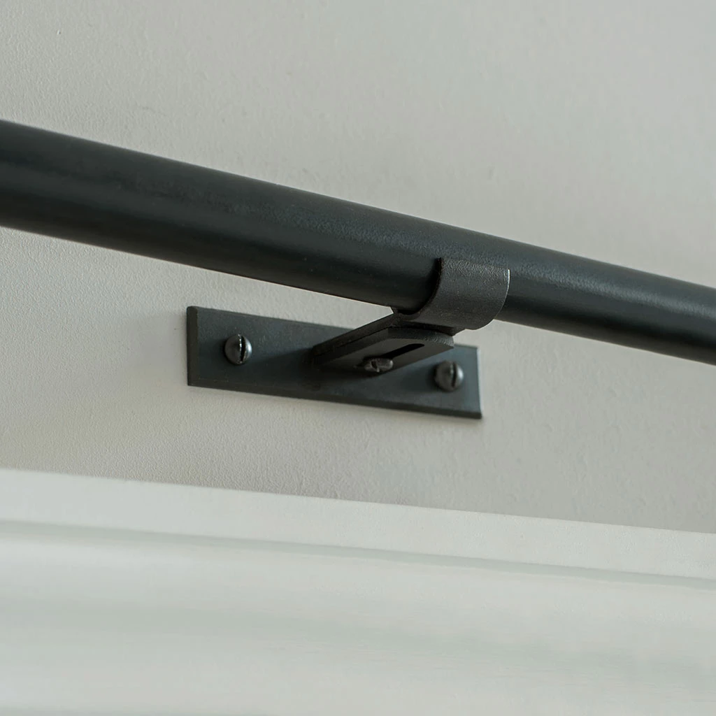 The brackets have an adjustable arm that enables you to fit a pole 5.5 – 7.2cm from the wall to suit your requirements. They work in conjunction with our 20m poles, any of our 20mm bracket range and our C-shaped 20mm Stoke Ring and Passing Rings for a complete system. Hand forged from high quality steel, these brackets are finished in traditional black Beeswax for a lovely soft, wrought iron look. We also make a wide range of complementary finials, rings and curtain holdbacks for you to choose from.