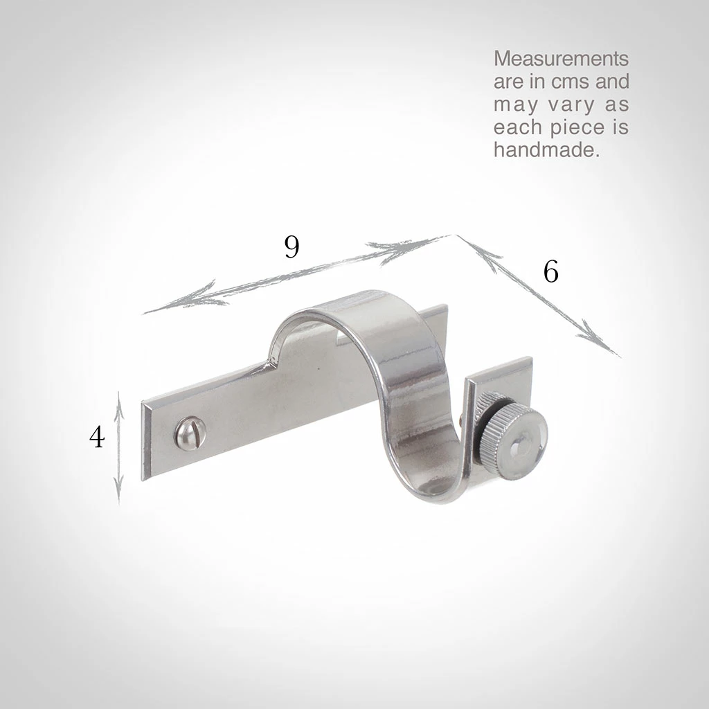 Our 20mm Chapel Centre Brackets are the perfect companion for your forged iron curtain poles ensuring they will look fabulous for years to come in whichever room they are fitted. Finished in Mercury for a contemporary silver grey finish, these brackets are made from premium quality steel and are suitable for all curtains. We also make a wide range of complementary finials, rings and curtain holdbacks for you to choose from. The brackets have a decorative thumbscrew at the front to help secure your pole, and chamfered edges for an elegant finish.