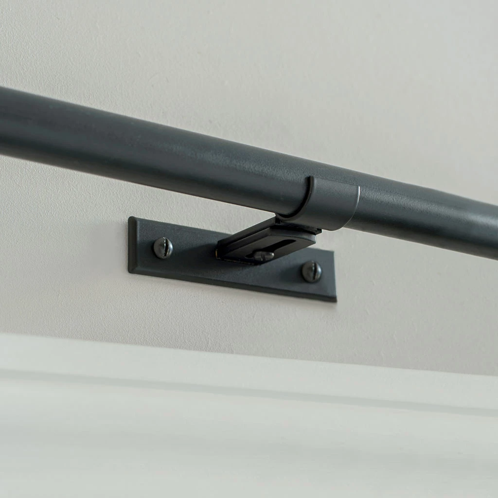 The brackets have an adjustable arm that enables you to fit a pole 5.5 – 7.2cm from the wall to suit your requirements. They work in conjunction with our 20m poles, any of our 20mm bracket range and our C-shaped 20mm Stoke Ring and Passing Rings for a complete system. Hand forged from high quality steel, these brackets are finished in our smart, matt black paint for a versatile, uniform look. We also make a wide range of complementary finials, rings and curtain holdbacks for you to choose from.