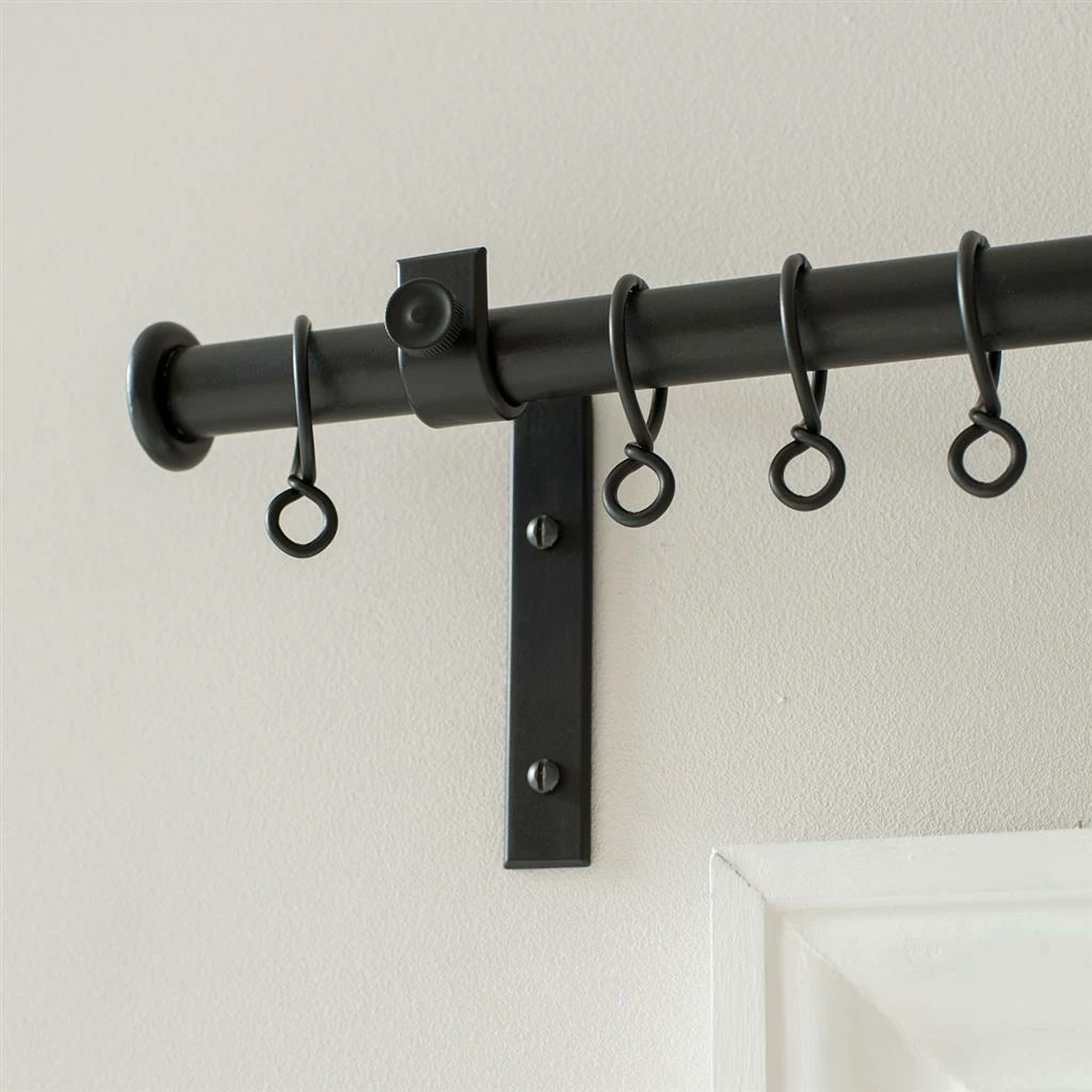 Our 20mm Chapel Standard Brackets are the perfect companion for your forged iron curtain poles ensuring they will look fabulous for years to come in whichever room they are fitted. Finished in Matt Black for a smart, uniform finish, these brackets are made from premium quality steel and are suitable for all curtains. We also make a wide range of complementary finials, rings and curtain holdbacks for you to choose from. The brackets have a decorative thumbscrew at the front to help secure your pole, and chamfered edges for an elegant finish.