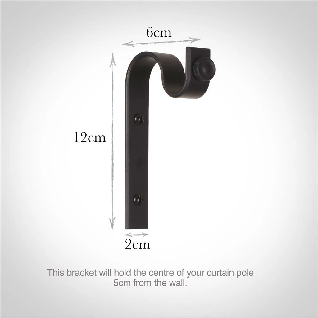 - Standard brackets are generally used at either end of your pole. With a reach (depth) of 6cm to the front of the pole, they will fit most window settings.