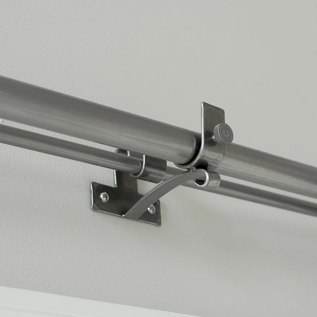 - Double brackets are generally used at either end of your pole. With a reach (depth) of 9cm to the front of the pole, they will fit most window settings.