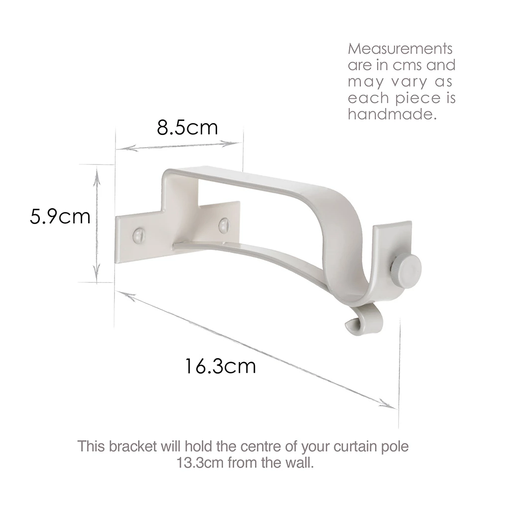 Our new 25mm Chapel Extended Centre Brackets are the perfect companion for your forged iron curtain poles ensuring they will look fabulous for years to come in whichever room they are fitted. Designed to fit windows with a protruding frame, or where a longer reach is required for your pole, these brackets are double the depth of our Standard Chapel Brackets and incorporate a decorative thumbscrew to help secure the pole, and chamfered edges for an elegant finish.