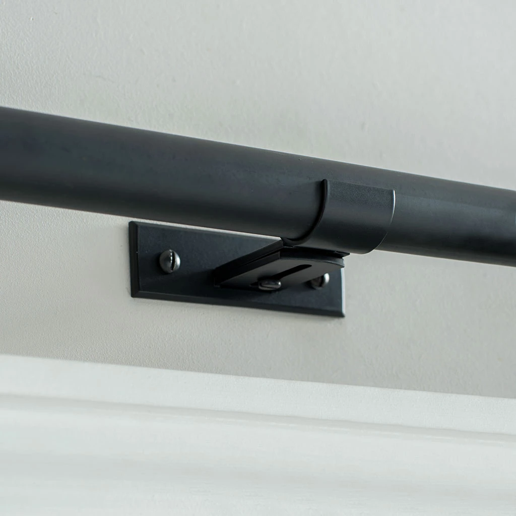 The brackets have an adjustable arm that enables you to fit a pole 6.2 – 8.2cm from the wall to suit your requirements. They work in conjunction with our 25m poles, any of our 25mm bracket range and our C-shaped 25mm Stoke Ring and Passing Rings for a complete system. Hand forged from high quality steel, these brackets are finished in our smart, matt black paint for a versatile, uniform look. We also make a wide range of complementary finials, rings and curtain holdbacks for you to choose from.