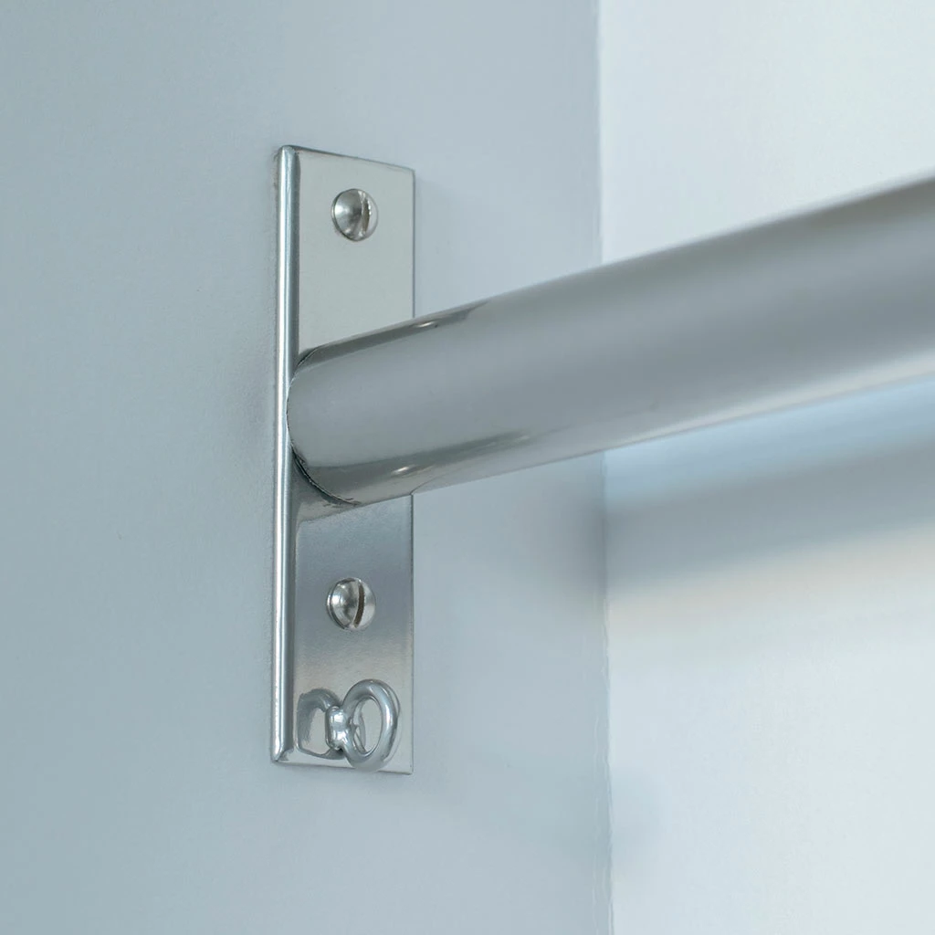 - A recess bracket is used where the pole needs to fit within a window recess and is positioned at right angles to the pole. The pole slots onto the bracket in place of a finial.