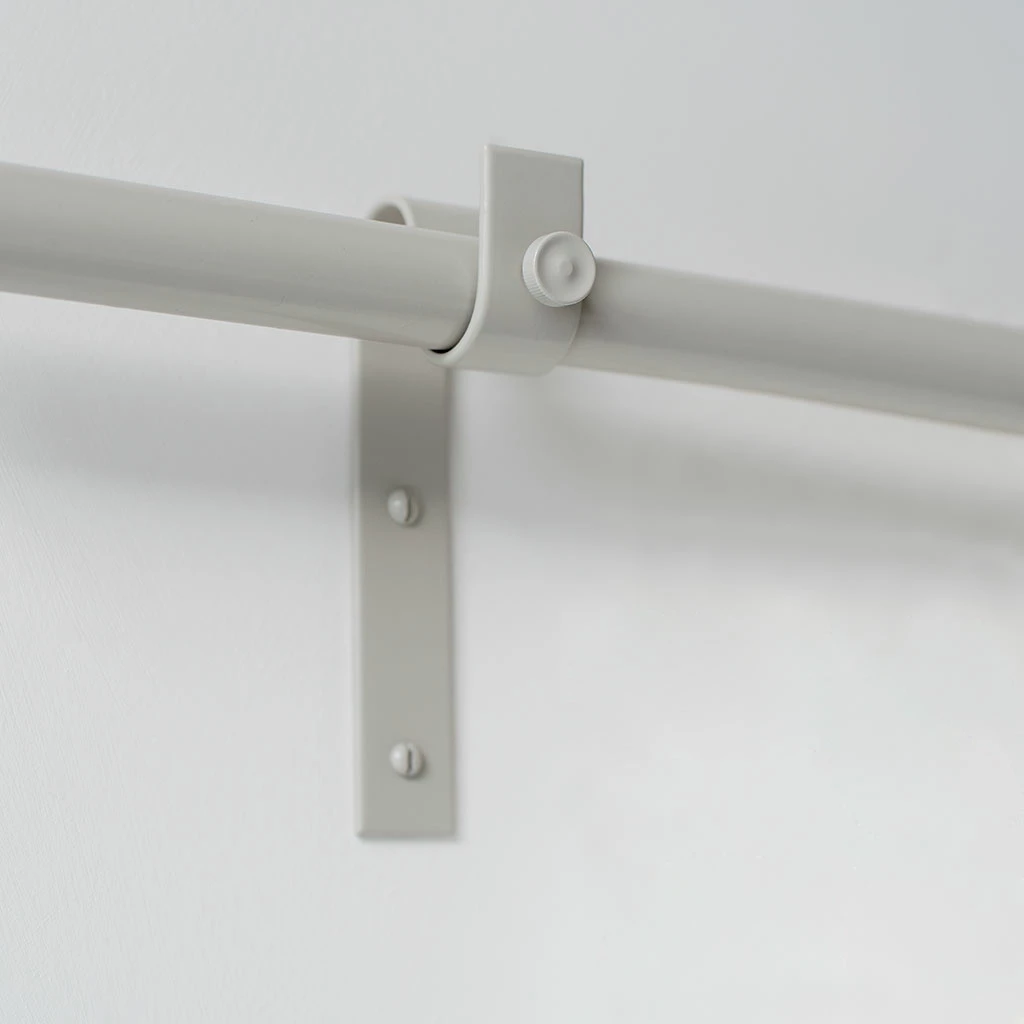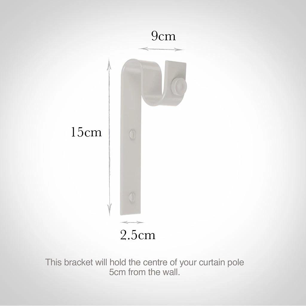 - Standard brackets are generally used at either end of your pole. With a reach (depth) of 7.6cm to the front of the pole, they will fit most window settings.