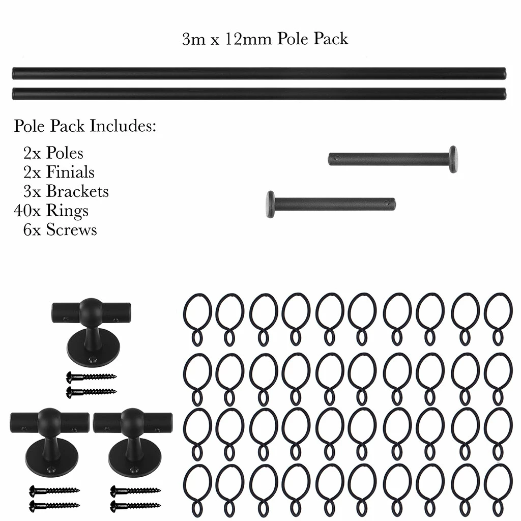 Each pack contains all you need to dress one window and comes complete with curtain pole, finials, rings and brackets: