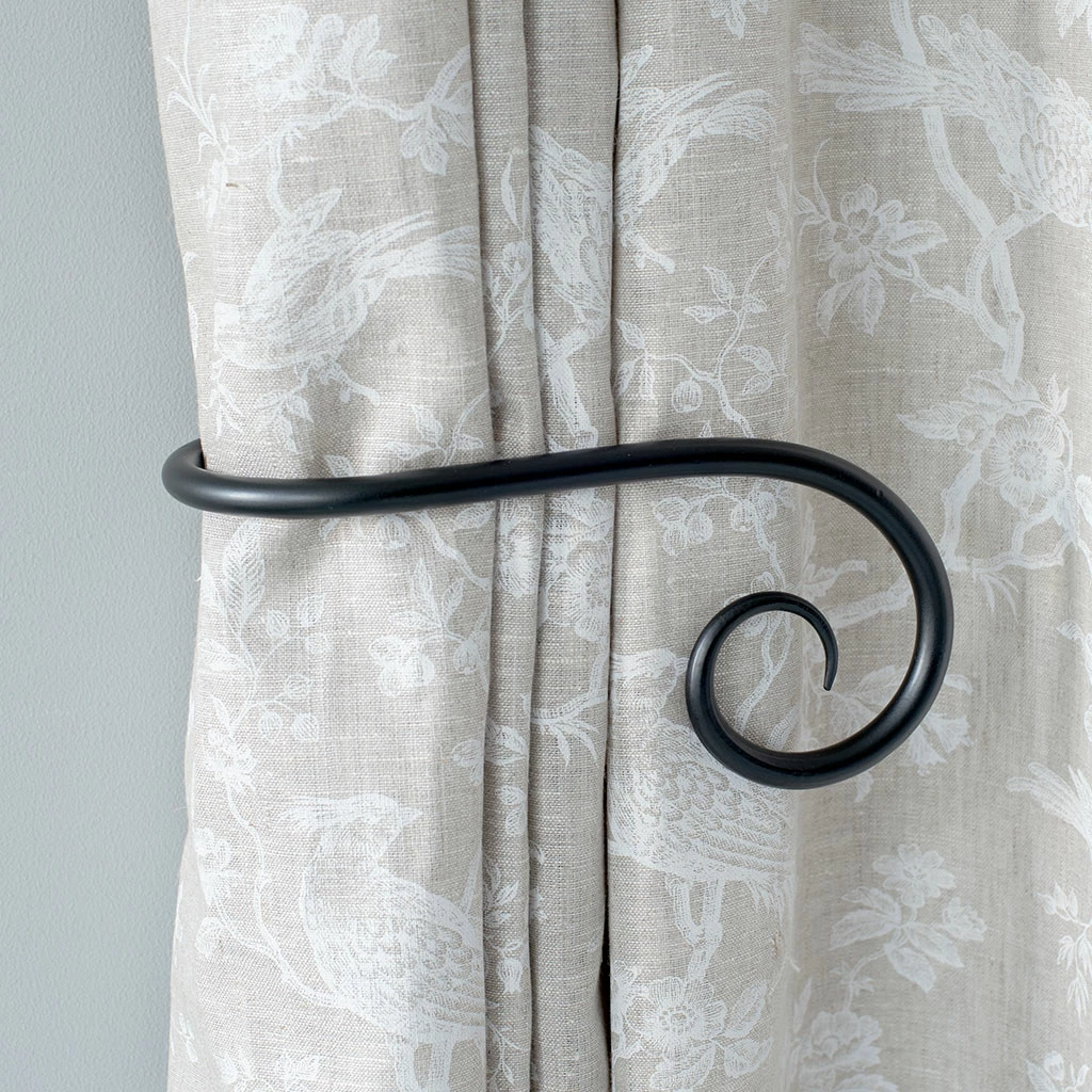 This elegant, hand forged holdback is available in a choice of finishes to match our curtain pole selection.