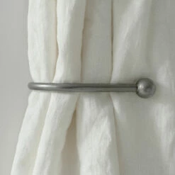 A hand forged, solid steel holdback to match our Button finial. The holdbacks are available in two sizes: this smaller holdback is generally recommended where there is only one width of fabric in the curtain (or more if it is a very light, unlined fabric).