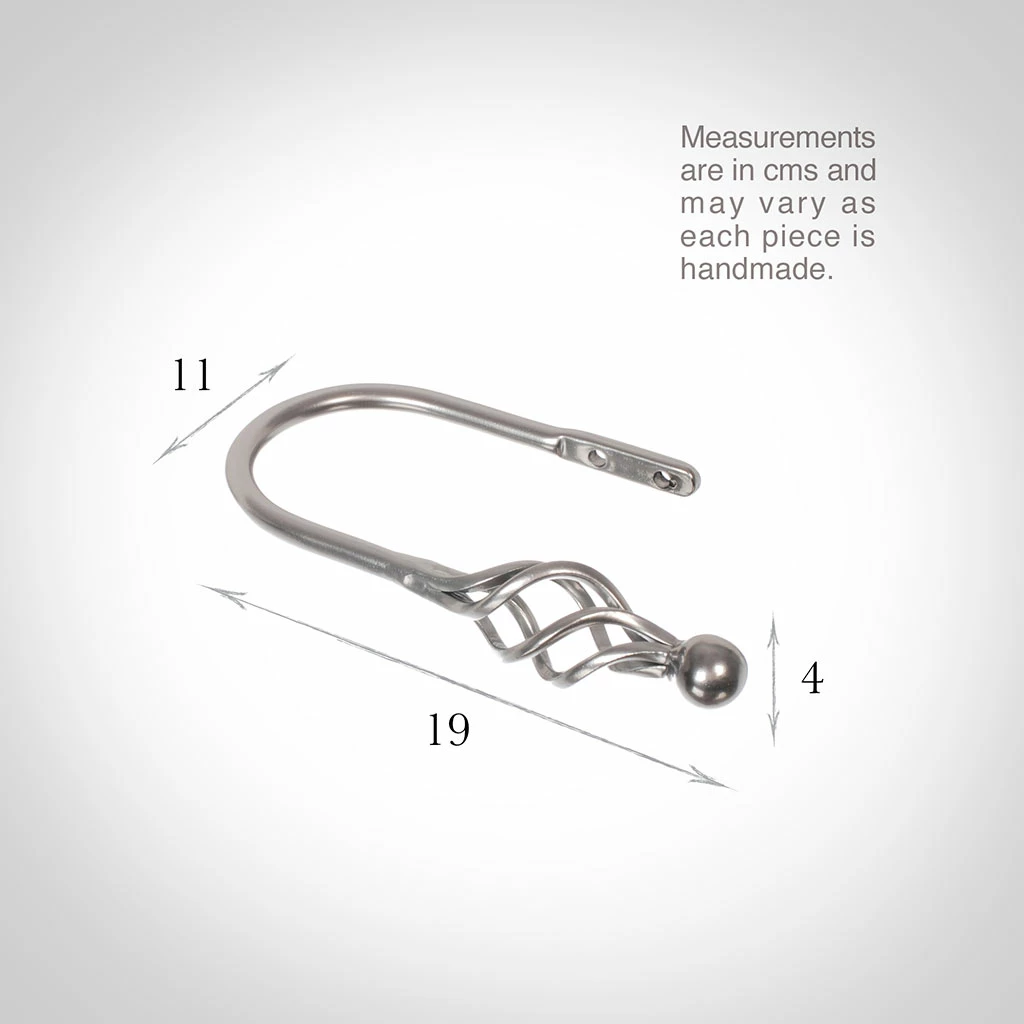 A hand forged, solid steel holdback to match our Cage & Ball finial. The holdbacks are available in two sizes: this smaller holdback is generally recommended where there is only one width of fabric in the curtain (or more if it is a very light, unlined fabric).
